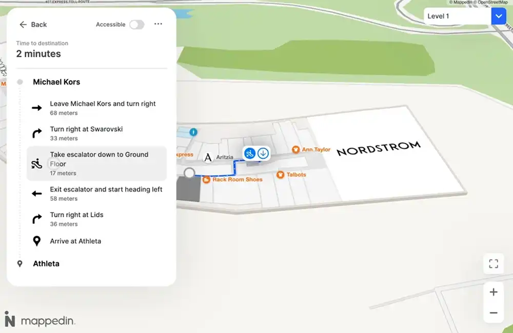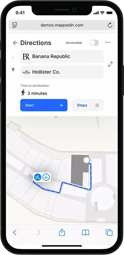 Routes prioritize elevators, ensuring everyone navigates your venue independently.