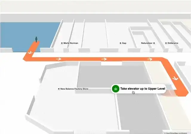 Enable our latest iteration of stacked maps to help users navigate multi-floor journeys. This unique visualization can show an entire path spanning multiple floors including any vertical connections required (stairs, escalators or elevators).